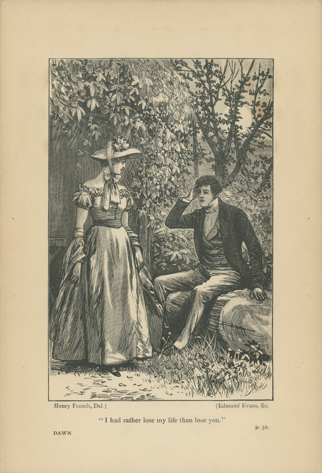 Dawn is a supernatural romance and Haggard’s first novel. Haggard wrote Dawn under the title Angela while studying for the bar and living in Norwood. It was first published as an unillustrated triple-decker by Hurst and Blackett, London, on 10 April 1884. Hurst and Blackett paid Haggard £40 for the first 400 copies, and £30 for every 100 copies after. 500 copies were printed in this initial run. Haggard’s bibliographers contest whether J. W. Lovell, New York or Harpers, New York published the first US edition in 1887. J. & R. Maxwell, London, February 1887 published Dawn in one-volume accompanied by a frontispiece by H. French. The Spencer Blackett, London, edition from 1888 featured a colored frontispiece by E. Hume. Spencer Blackett, London, published an edition of Dawn with 16 illustrations by Laslett J. Pott and an introduction by Haggard in 1890. Haggard’s introduction and Pott’s illustrations also appear in the Harper, New York, 1890 edition. In 1892 Tauchnitz of Leipzig published a copyright edition. The Longmans, Green, and Co., New York, Silver Library edition was published in 1894, and featured 16 illustrations by D. Murray Smith and a dedication by Haggard. In c. 1906 George Newnes, London, published an edition with eight illustrations by Cyrus Cuneo In 1924 Harrap and Co., London, published an edition of Dawn with a pictorial dust jacket.